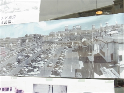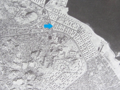 本牧にある大谷不動産のウィンドーに張られた接収当時の本牧の写真
