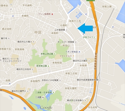 早速現地に向かうと、元町方面から麦田トンネルを過ぎ、山手警察署の交差点を左折すると、イトーヨーカドーの裏手に、その空地を見つけた。