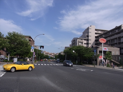 山手警察署やイトーヨーカドー側はマンションや商業施設など近代的な建物が多いが、道路をはさんで反対側には古い民家の姿がある。