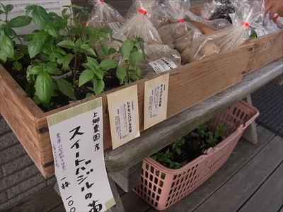 上郷農園でとれた無農薬の野菜が、施設の前に並んでいる