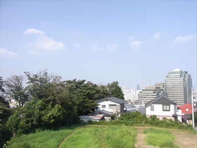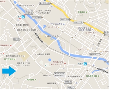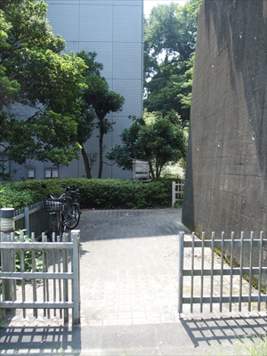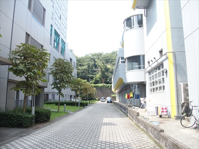 NRI横浜ラーニングセンターと保土ケ谷スポーツセンターの間の通路の先に投稿の山がある
