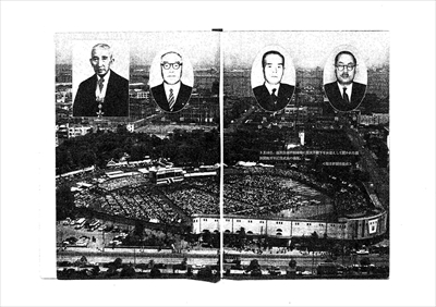 横浜公園平和球場に皇太子殿下をお迎えして開かれた横浜開港百年式典の様子
