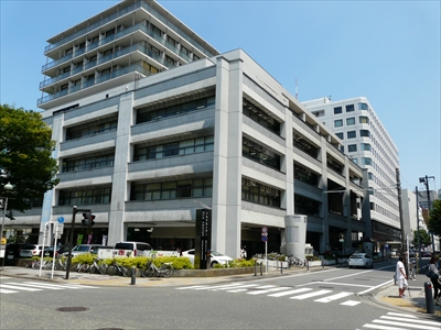 茶色い建物が中区役所