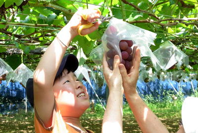 お子さまたちは初めての「ぶどう狩り」に大はしゃぎ