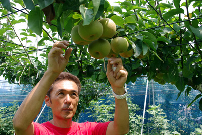 もともと長谷川さんは養豚業者だったが、15年前に果樹栽培業に転業。今では梨の他、柿、ぶどう、りんごなども栽培。