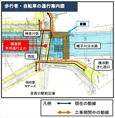 歩行者、自転車用の仮橋を用意(横浜市HPより)