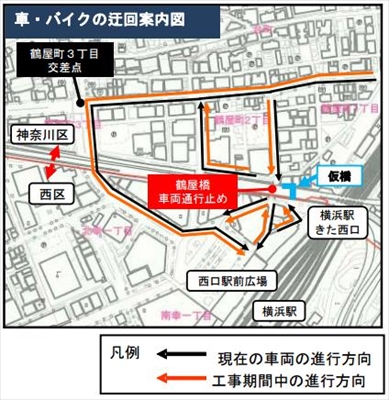 自動車やバイクはこのように迂回する(横浜市HPより)