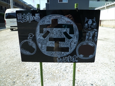 これが縁で、ワゴンをとめている駐車場の看板も書いたそう
