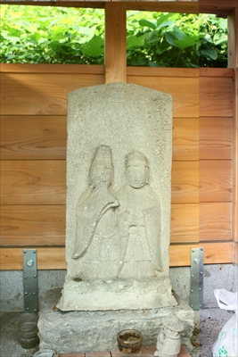 この双体道祖神は『神奈川の道祖神』『道祖の神々』などの資料によると「像の頭上が広くとられ、また、女神が袂を軽く口に当てている姿などが珍しくよく出来た双体道祖神」であるそうだ。