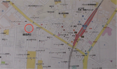 バスが通る大通りから綱島2丁目方面の路地へ入り、間もないところ