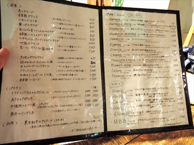 前菜、パスタ、ピザなど、メニューはとても充実