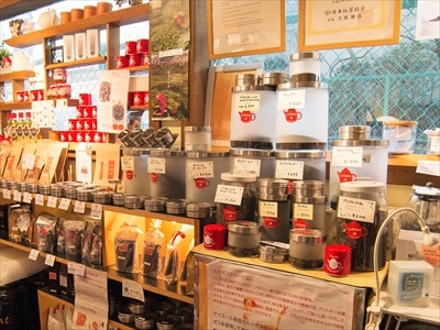 こぢんまりとした愛らしい店内には、オリジナルティーや季節によってのシーズナルティー、ドイツのロンネフェルト社、フランスのジャンナッツ社の選び抜かれた約80種類もの茶葉と、紅茶をおいしくいただくためのアイテムが並んでいる。