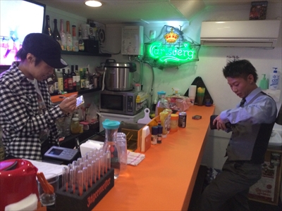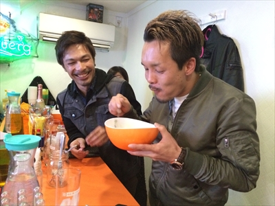 ダイスケさんの先輩であるまっちゃんも来店(右)