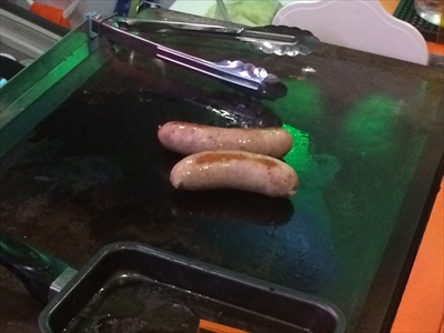 添えられたソーセージは鉄板で香ばしく焼き上げる
