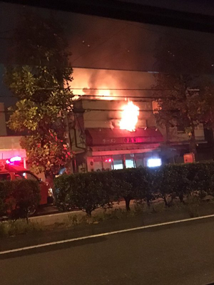 ラーメン中島家さん(西区浅間町)が火事です。従業員の方は大丈夫でしょうか・・・。詳細レポート宜しくお願いします。(じゅん☆じゅんさんのキニナル)