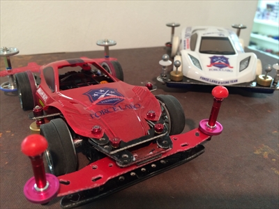 筆者の白く輝くリバティエンペラーと店長のMSシャーシを用いた赤いマシン。