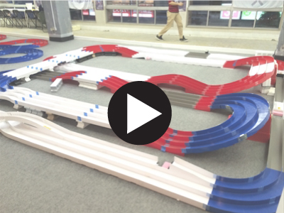 国内最大級270平方メートルの店内には全長114メートルの立体コースと77メートルの平面コースを設置。多くのミニ四駆ファンが訪れている!