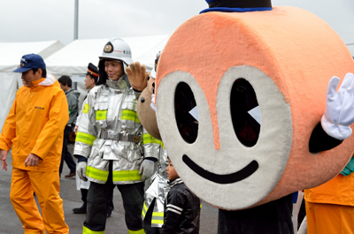 主役(?)のはまりんもお客さんをお出迎え