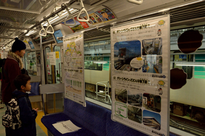電車内を利用した展示、「グリーンライン建設史」