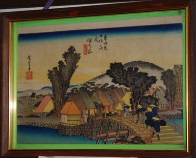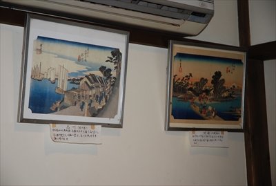 広重の東海道五十三次の浮世絵が飾られている