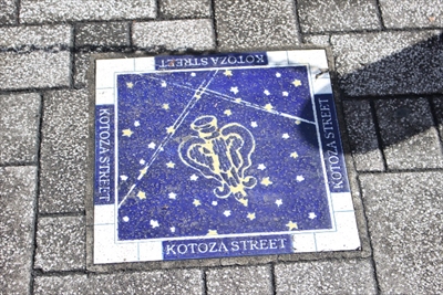 通りの足元にも星座にまつわるプレートがはめ込まれていた
