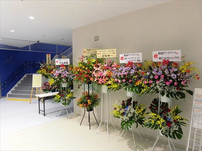 筆者も同時に足を踏み入れると・・・まず目に付いたのは、花。さまざまな団体から送られているようだ。その中に・・・!