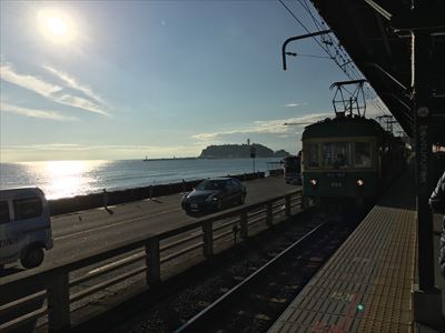 江ノ電vs自転車。果たしてどちらの方が早く藤沢駅に着くのか。まずは江ノ電の様子から。