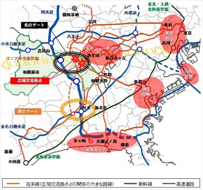 これに対し、橋本駅周辺は「産業の活力と賑わいがあふれる交流拠点」としての役割を担うため、鉄道や道路によって首都圏の各方面にアクセスが可能な交通ネットワークを生かし、交流ゲートとしてのまちづくりを進めるとしている。