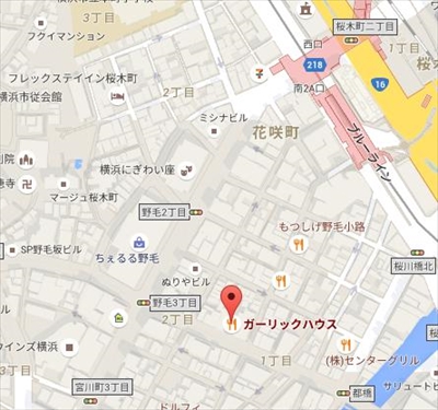 投稿にあったガーリックハウスはJR桜木町駅から徒歩5分。数々の人気店が軒を連ねる野毛にある。