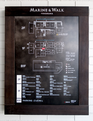 「MARINE & WALK YOKOHAMA」店内マップ。2階海側はテラスでつながっている