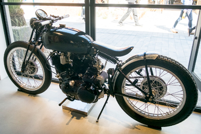 置いてあったのは、イギリスのヴィンセント社のもの。これは「NEIGHBORHOOD」デザイナー・滝沢伸介(たきざわ・しんすけ)さんの私物だそう。