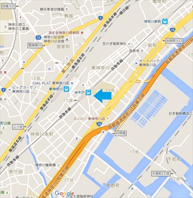神奈川区仲木戸公園(青矢印) (Googlemapより)