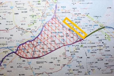 現在の地図で確認すると、オレンジ色網掛け部分が入海だった