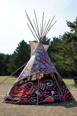 カラフルに色付けされたティピーがフェスの目印