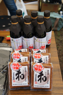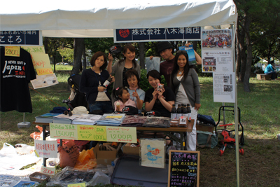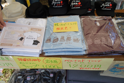 岩手県の陸前高田市から来た『こころ』と『八木澤商店』のブースでは、復興支援のために制作されたチャリティーTシャツなどを販売。