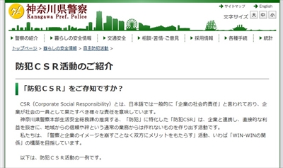 神奈川県警察のホームページでは防犯CSRの活動が紹介されている