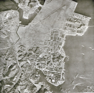 戦後、米軍によって撮影された追浜飛行場(同)