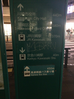 駅前案内板にサイン。幸先が悪い気がする