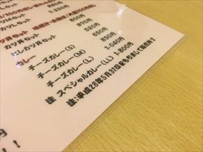 スペシャルカレーは豪勢にヒレカツ、ロースカツが付いて、S、M、L、LLの4サイズがある。2016年5月31日で提供が終了してしまうのはスペシャルカレーのLLサイズだ。