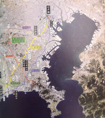 衛星写真で見る中原街道とその周辺(品川歴史館特別展図録『中原街道』より) ※