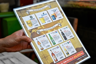 この世界各国のビールメニューの下部にある瓶ビール5本セットで3300円