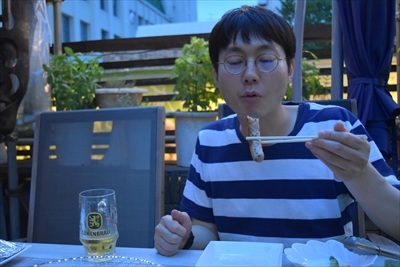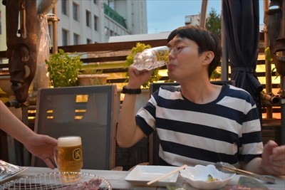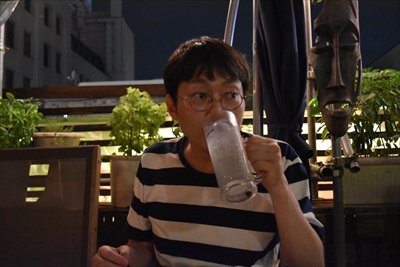 結露で涼感たっぷりのビールと(3)で記念撮影をすませたら