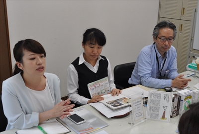 取材に対応してくれたのは、守山乳業株式会社の監査役、小玉豊(こだま・ゆたか)さん、マーケティング部課長兼チーフデザイナーの児玉邦夫(こだま・くにお)さん、同部係長の長谷川友子(はせがわ・ともこ)さん、お客様相談室の松﨑亜香里(まつざき・あかり)さん。