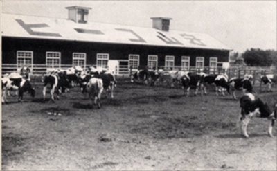 写真の年代は不明だが、1945(昭和20)年に守山牧場は空襲で被災したという記録が残っているため、設立から被災までの間の時期と思われる。