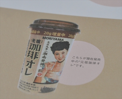 ちなみに、2003(平成15)年以降は、生乳100%のものしか商品名に「牛乳」と表記してはならないことになった。そのためコーヒー牛乳は正確には「コーヒー入り乳飲料」となってしまうため、「牛乳」の表記を外来語である「オレ」に変え、商品名を「元祖珈琲オレ」にリニューアル。