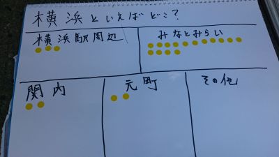 こうして関内駅周辺で22名の声を聞いた。結果は写真の通り、圧倒的に「みなとみらい」である。