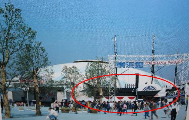 赤丸が入口部分の「ペリーの黒船」(『横浜博覧会公式記録』発行:財団法人横浜博覧会協会)