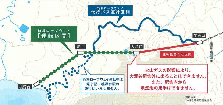 今回の運転再開によって、早雲山駅~桃源台(とうげんだい)駅間の全長4.0km区間が開通し、大涌谷駅の駅舎から外に出ることができるようになるが、火山性ガス警戒のため、一部立ち入り規制は継続。火山性ガス濃度によっては運転を休止することもあるという。