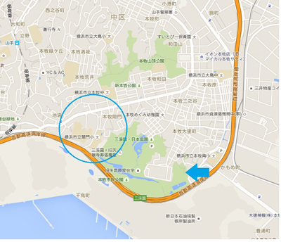 崖の下には本牧市民公園が広がる