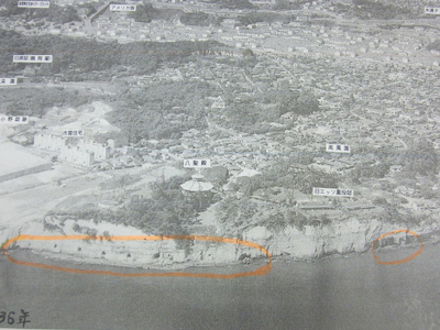 まずは本牧・根岸を中心にした郷土資料館・八聖殿を訪れ、係員に軍事施設について伺うと「岩壁に防空壕は多かったようです」と、昔の写真を見せてくれた。